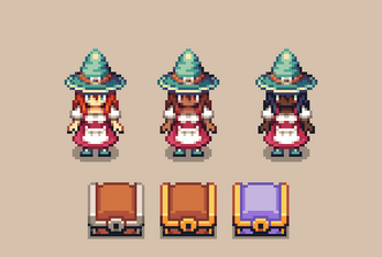 - Witch sprite x3 skin tones and with/without hat (4 directional idle and walking animations!)